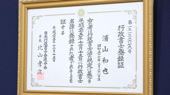 | 代表者 | 行政書士 浦山和也 埼玉県行政書士会 第13132679号(平成25年12月15日登録) |