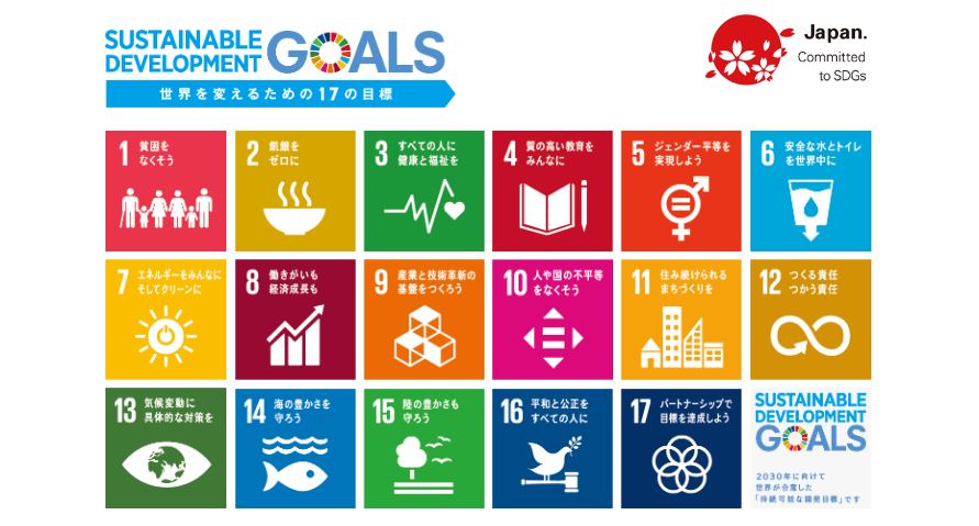 【SDGs】は、持続可能な世界を実現するための17のゴール・169のターゲットから構成され,地球上の誰一人として取り残さない(leave no one behind)ことを誓っています。